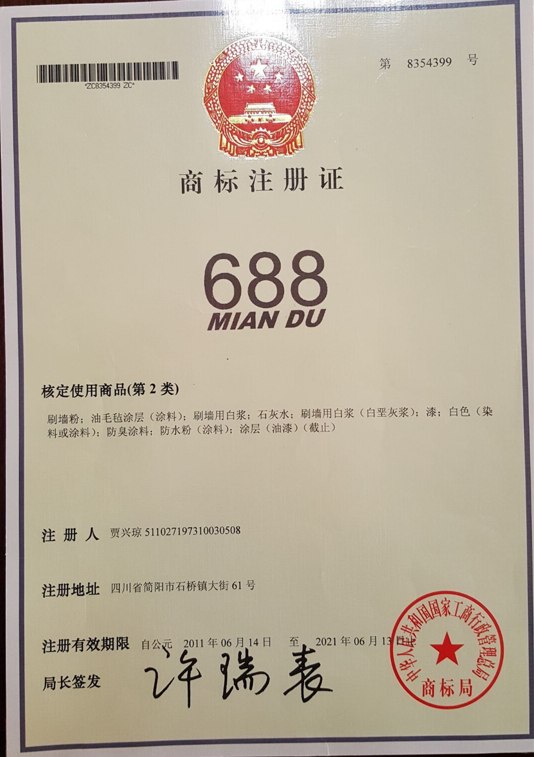 2011年6月14號注冊了688商標(biāo)。